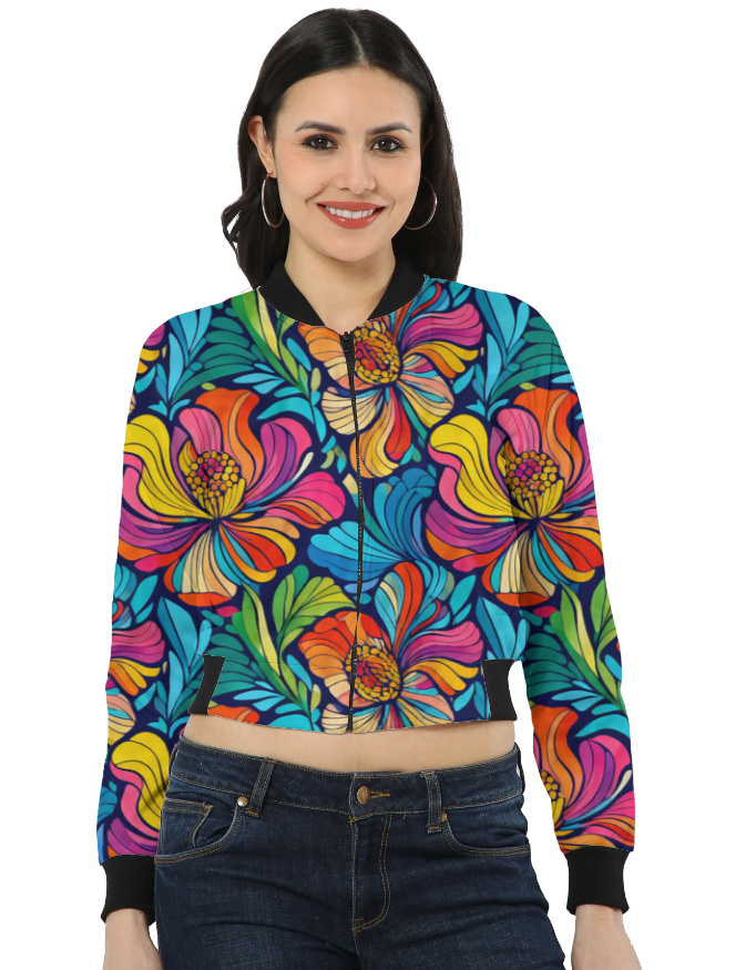 Design: Stylish bomber jacket with long sleeves, side pockets, and lycra ribbed hem and cuffs.